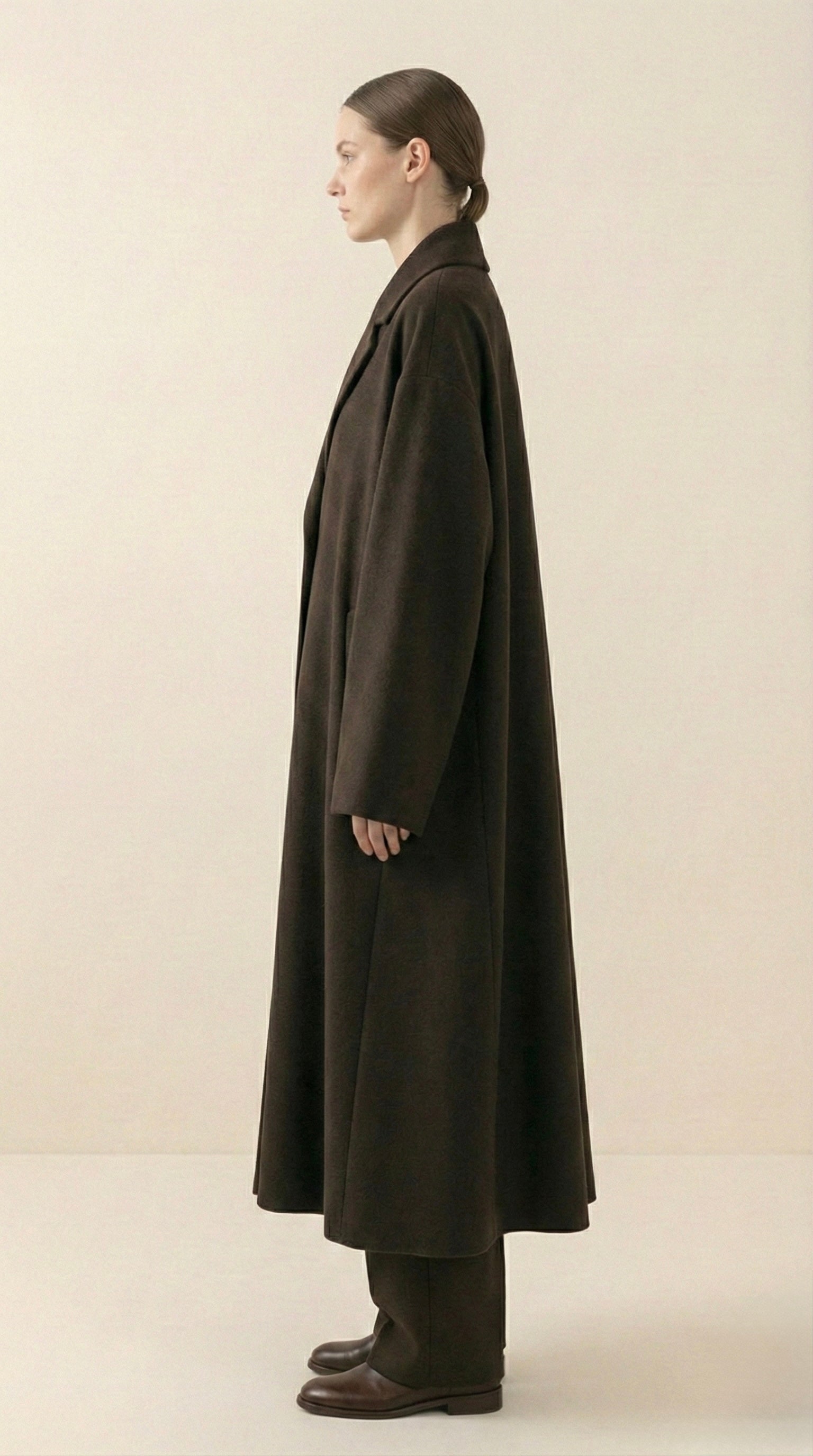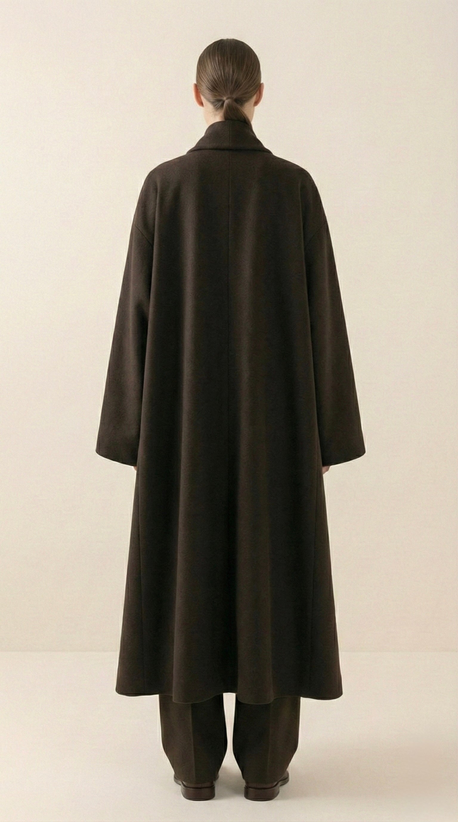 A sculptural, refined statement piece. This abaya coat is crafted from high-quality fluid modal and fully lined in silk for an exceptionally smooth, luxurious feel on the skin. The silhouette is wide, enveloping and designed to move with the body, creating presence without stiffness.